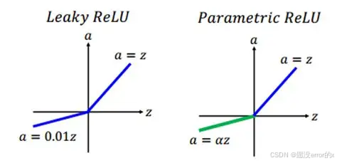 其中 α 通常取 0.01,或者作为可学习参数(PReLU)。