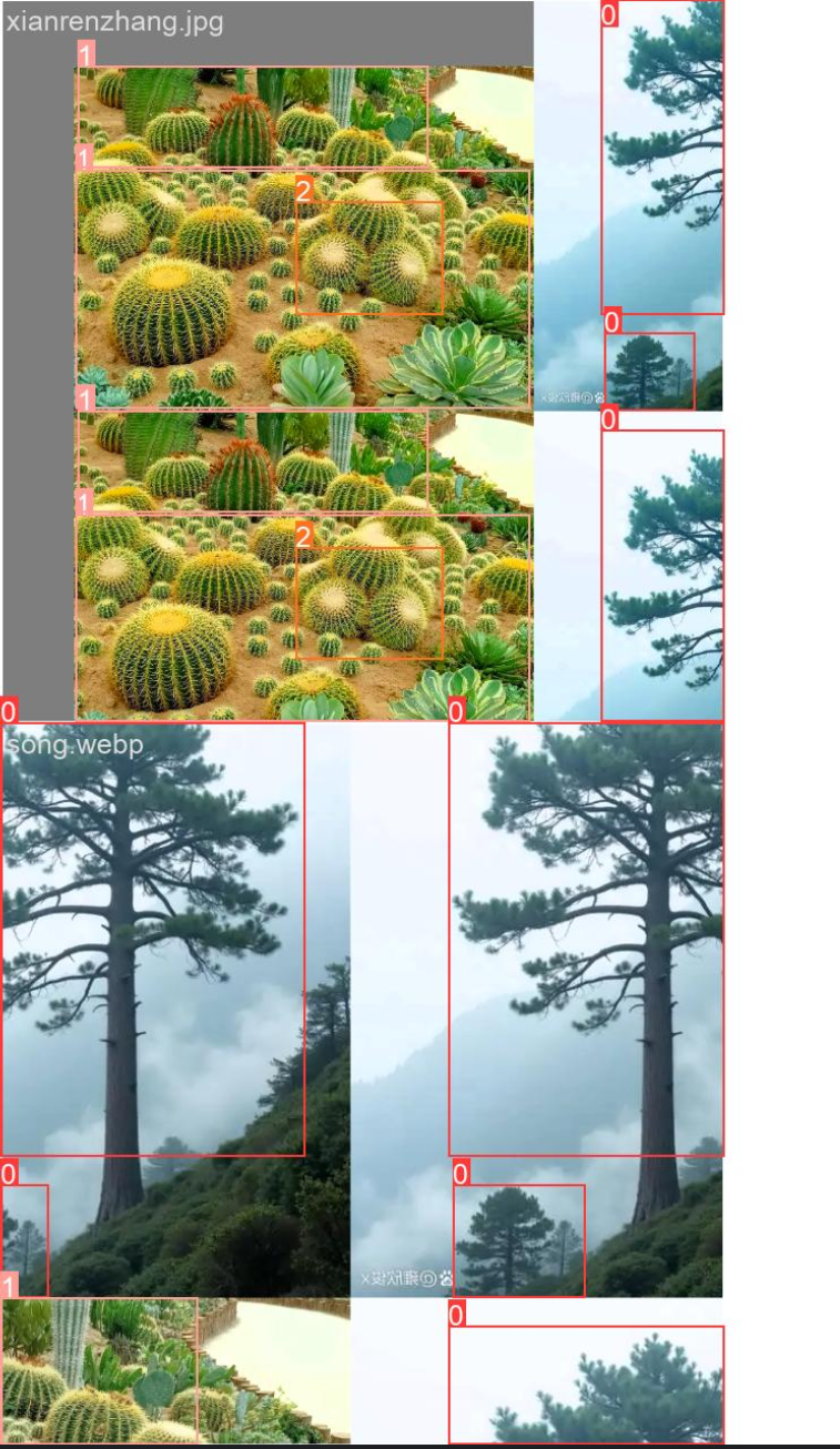 1.数据采集与分类:收集 “仙人掌、松树” 等目标的图像,覆盖不同生长阶段、光照条件、拍摄角度(如上图中仙人掌的密集场景、松树的山地场景),确保数据多样性;