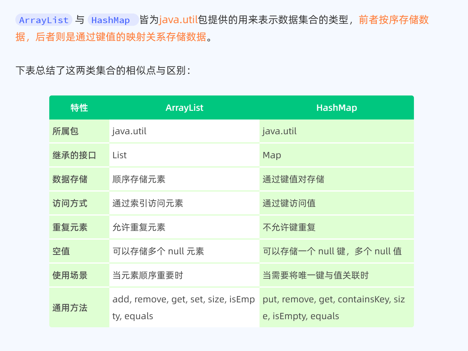- 常用方法:size()获取元素数量,containsKey/containsValue检查存在性,keySet/values/entrySet获取数据集合