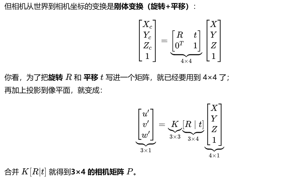 R由于相机的姿态造成的旋转与平移(相对于世界坐标系而言)