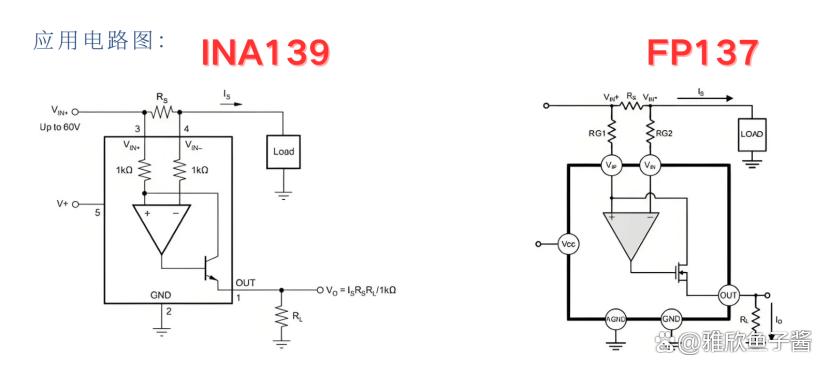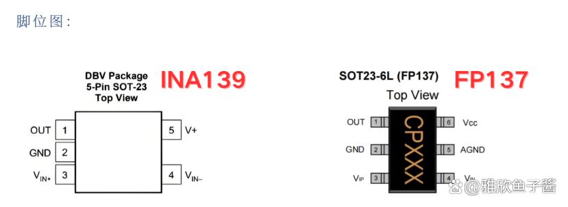 在封装上,INA139为5引脚SOT-23,FP137为6引脚SOT-23。PCB设计上布局兼容,仅需根据新增引脚调整少量走线,典型应用电路也基本一致 。
