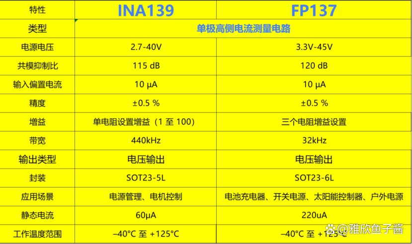 选型指南:电流检测芯片 TI INA139 VS FP137 详解 如何根据关键参数选择?