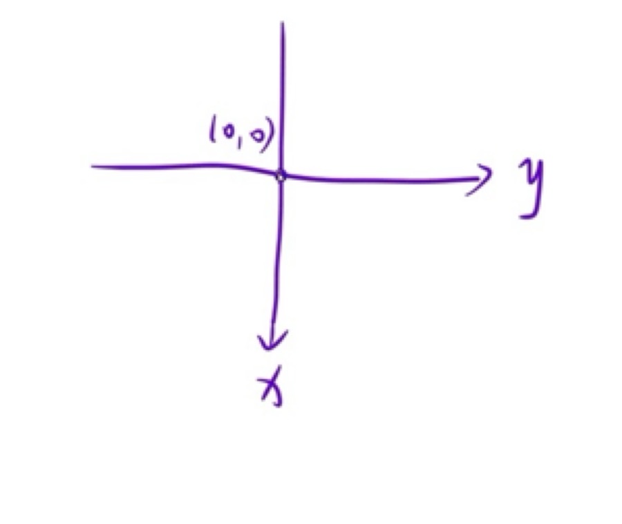 - 定义方向向量:先定义一个坐标轴,因为原点是在左上角,所以需要把整个坐标轴往右旋转90°,如下图1所示;定义两个数组,dx 和 dy ,dx = {0,0,1,-1} dy = {1,-1,0,0} ;此时如果从(2,3)往右走一个单位 -> (2,4)= (2,3)+ dx[0] + dy[0]
