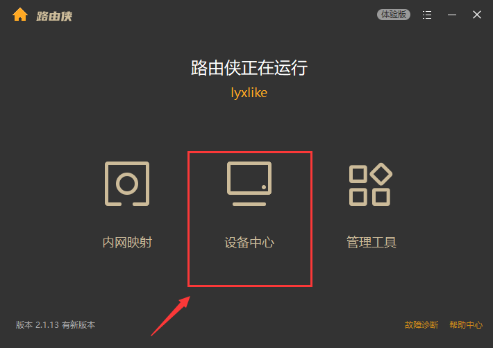 1,下载安装完成后,打开路由侠界面,进入【设备中心】。点击右下角的“添加设备”,此时可查看到对应的安装码,此安装码用于将设备添加到对应账号下,可选中后复制。