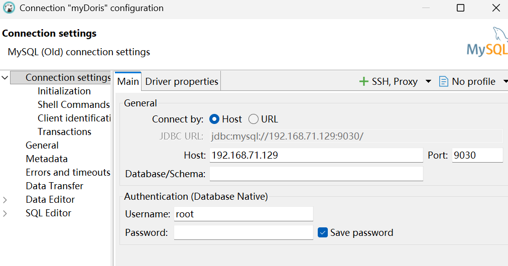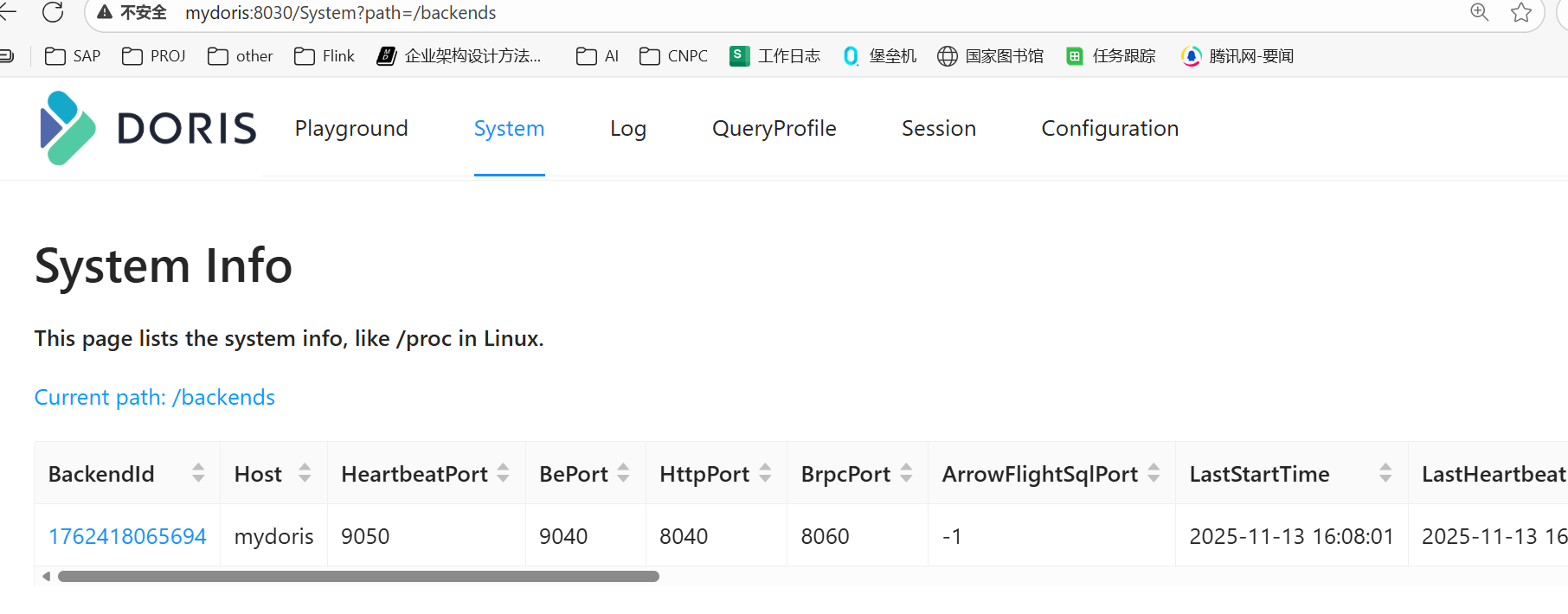 ALTER SYSTEM ADD BACKEND "mydoris:9050";