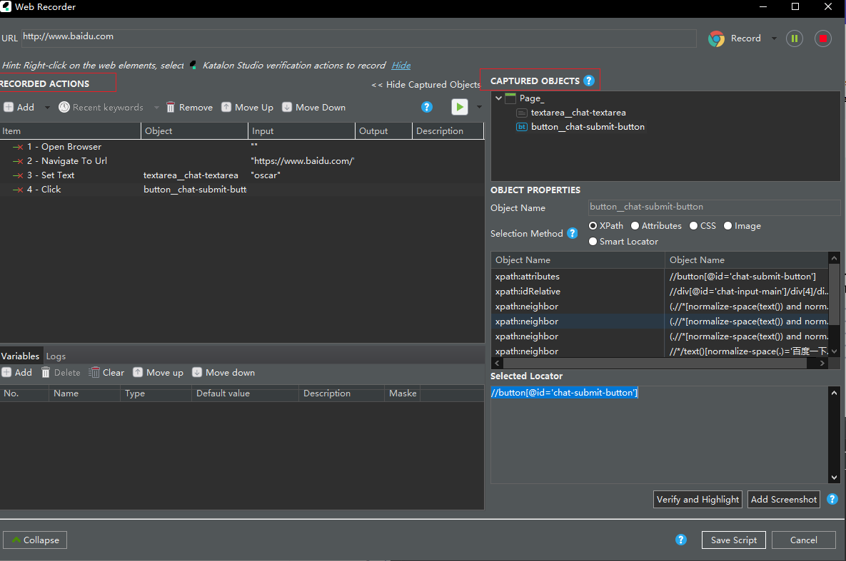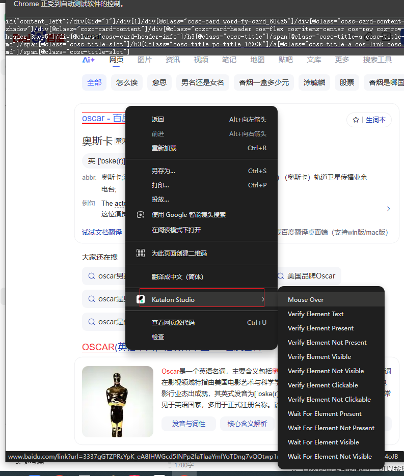 - 录制时可通过右键单击使用Katalon Studio提供的高级操作