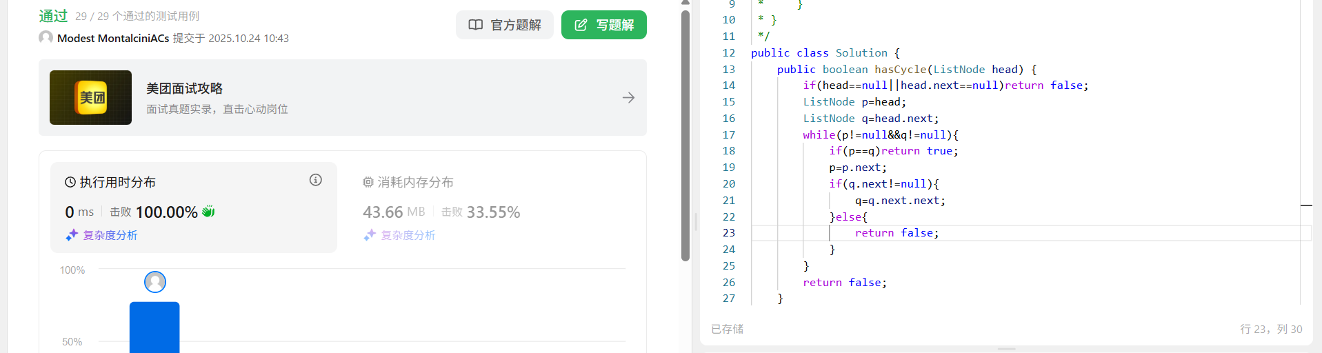 我的这个方法和题解中的代码的区别还是挺大的,中间有一部分我借鉴了链表那一块的一道题的解法,好像是寻找公共节点的那个地方。