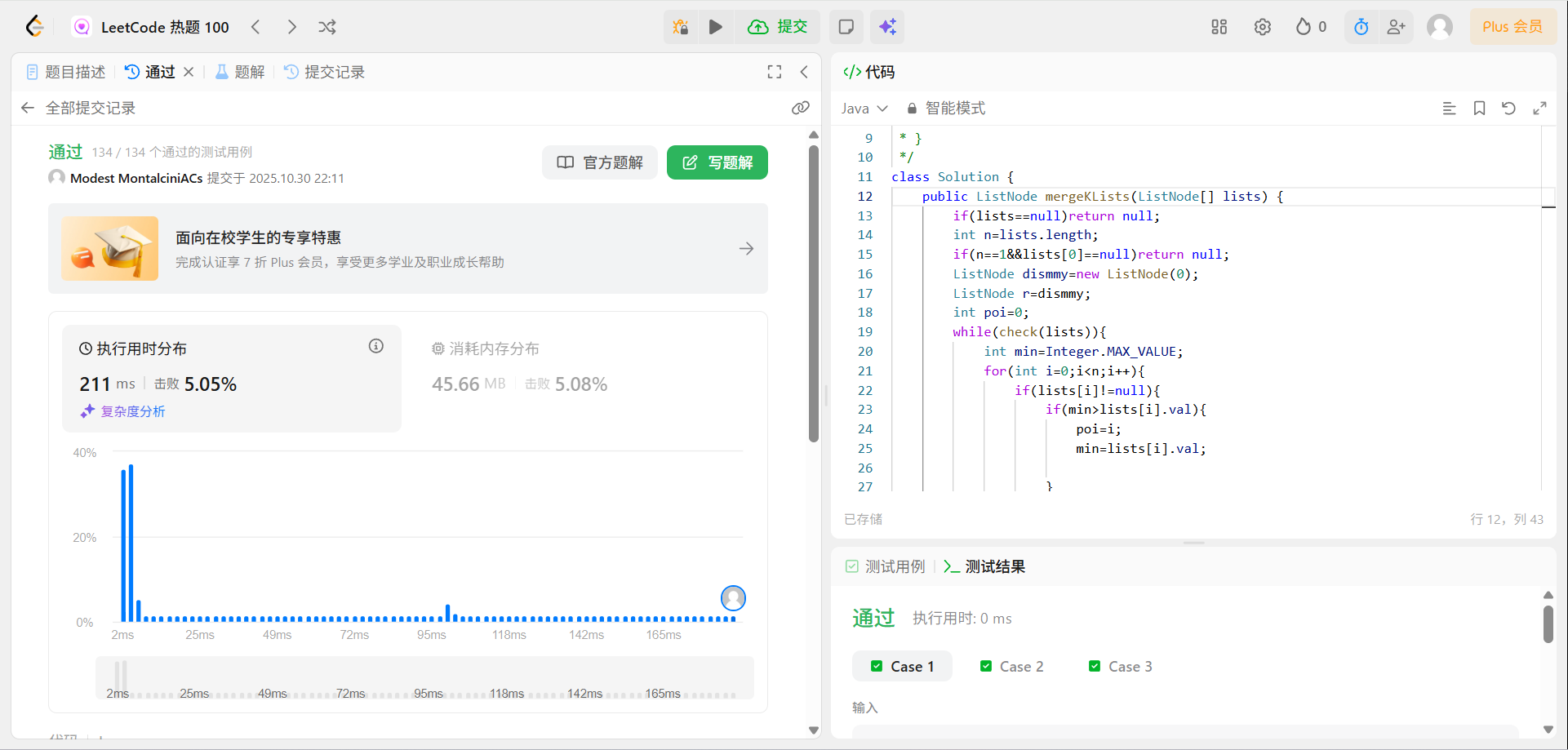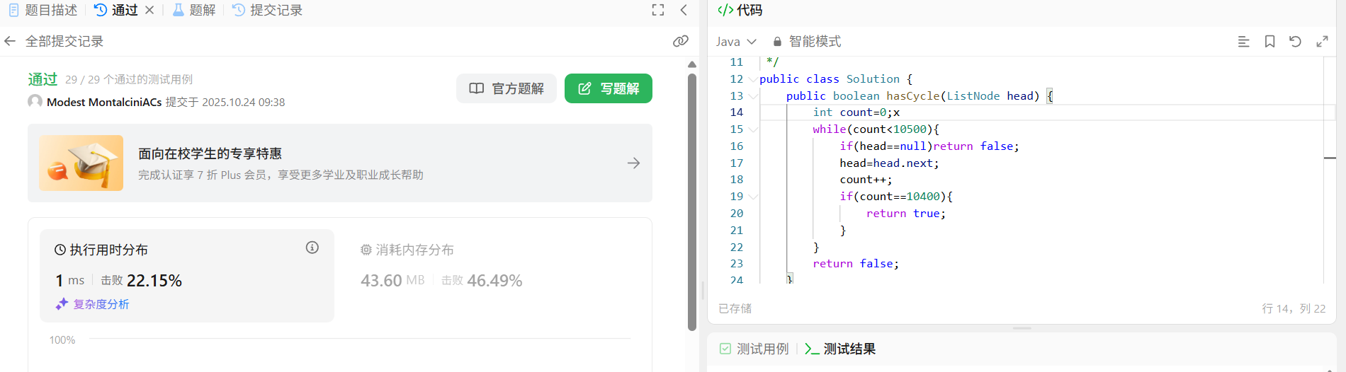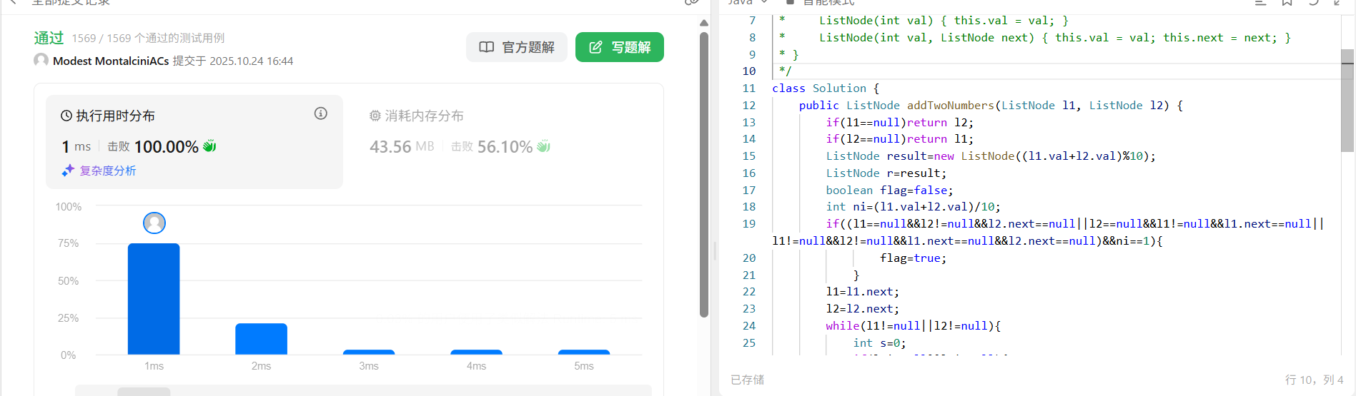 后面我也将我的,在力扣中点运行成功,但点提交成功不了的代码(一个内存超出,一个运行时间超出)的代码都附在本文中。