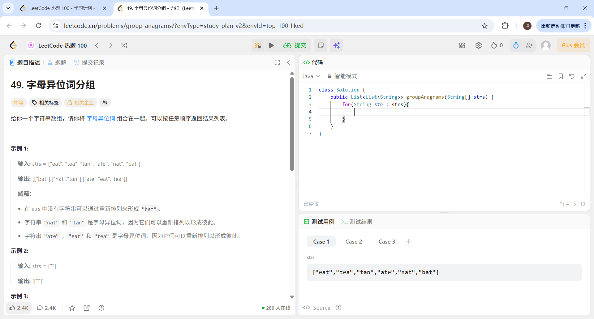 public List<List<String>> groupAnagrams(String[] strs) {for(String str : strs){}