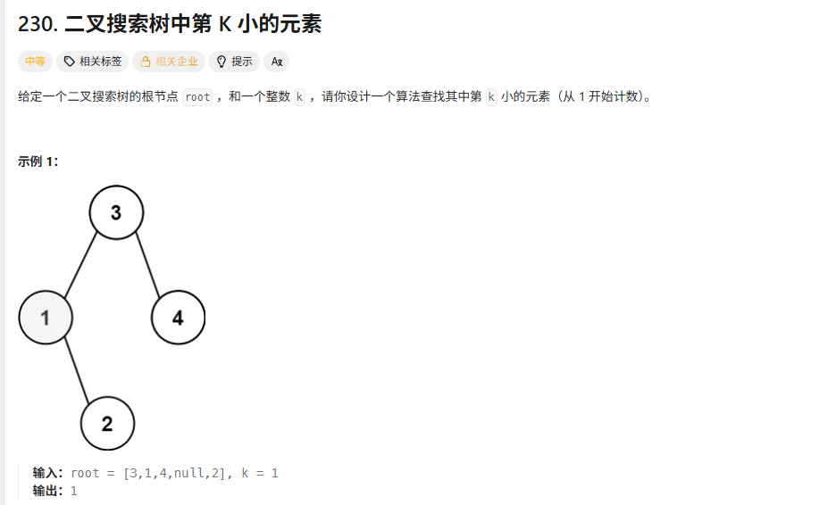 class Solution {public int kthSmallest(TreeNode root, int k) {Deque<TreeNode>stack=new LinkedList();List<Integer>list=new ArrayList();TreeNode p=root;while(p!=null||!stack.isEmpty()){if(p!=null){stack.push(p);p=p.left;}p=stack.pop();list.add(p.val);p=p.right;}return list.get(k-1);}
