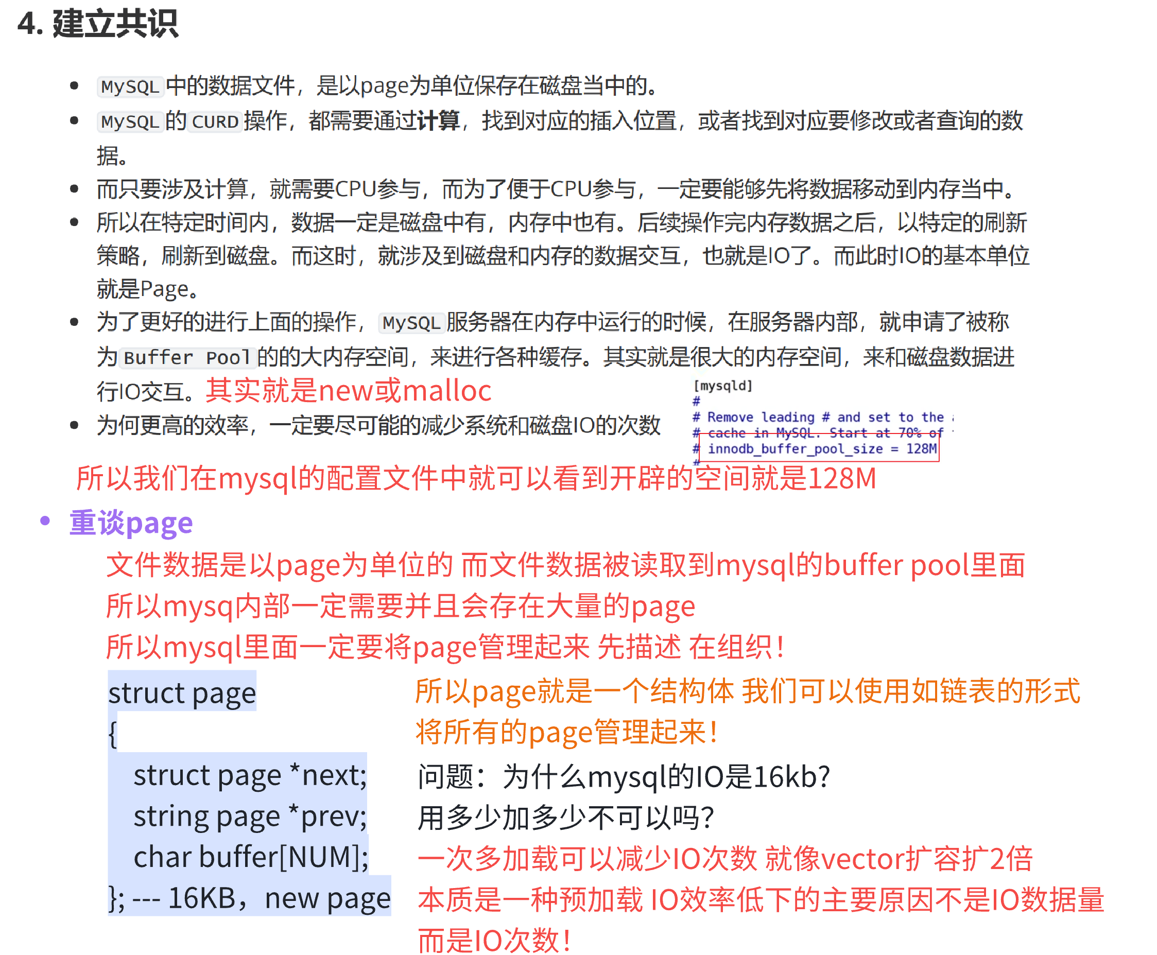 MySQL中的数据文件,是以page为单位保存在磁盘当中的。MySQL的CURD操作,都需要通过计算,找到对应的插入位置,或者找到对应要修改或者查询的数据。- 而只要涉及计算,就需要CPU参与,而为了便于CPU参与,一定要能够先将数据移动到内存当中。