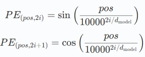 正弦位置编码利用不同频率的正弦和余弦函数为每个位置生成唯一模式。编码公式如下: