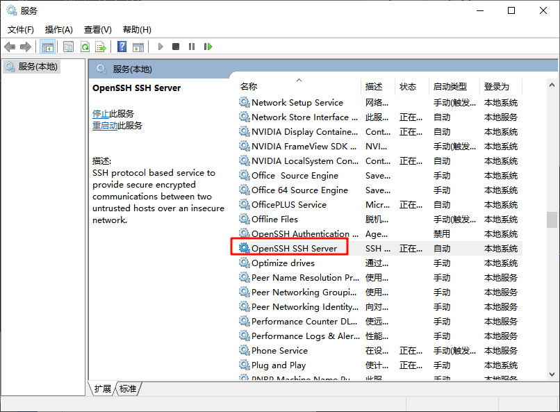 如果列表里没有这个条目 → 你没有安装 SSH 服务。