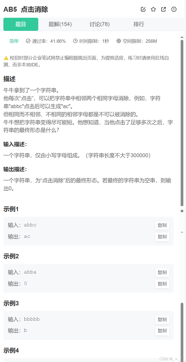 点击消除_牛客题霸_牛客网 像这种,相邻两个一样的元素可以删除的,考虑用栈。像栈这种题,难度不大,但一定要记住使用栈顶元素时,要先判空,如果是空就不能取栈顶元素,否则会报错段错误。做栈时可以考虑这个问题。
