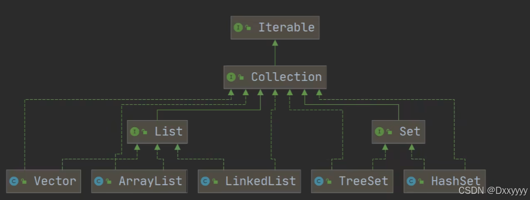 4)Collection接口没有直接的实现子类,是通过它的子接口Set和List来实现的