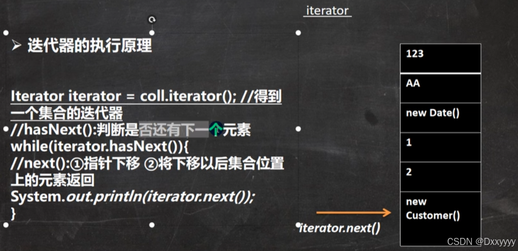 1)Iterator对象称为迭代器,主要用于遍历Collection集合中的元素,。