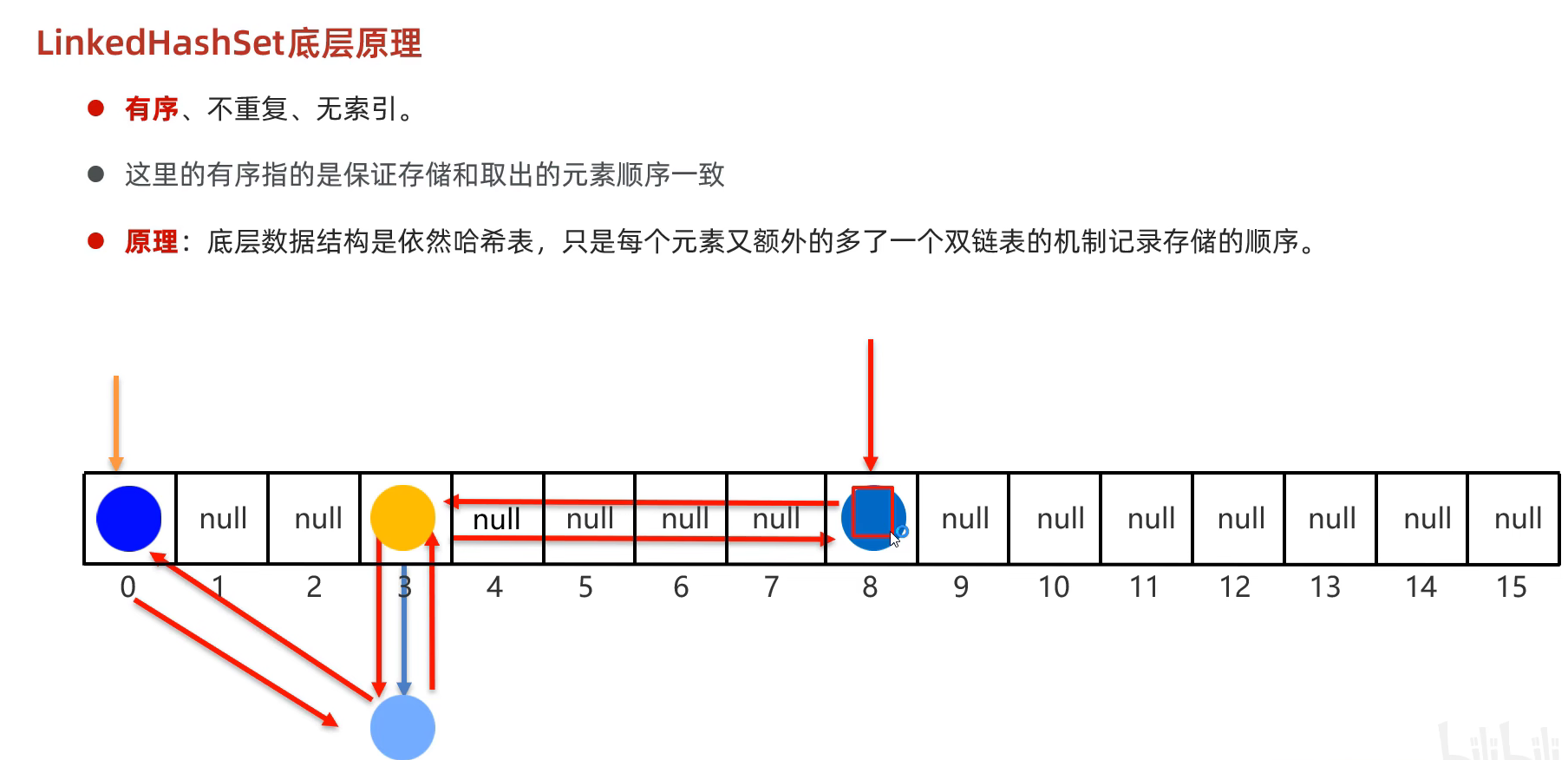 放入的元素之间会记录相邻元素的地址值,所以有前后顺序,可以遍历双向链表