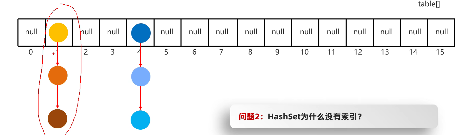 答:因为HashSet有数组,链表,和红黑树,链表上的元素怎么定义索引,所以取消了索引