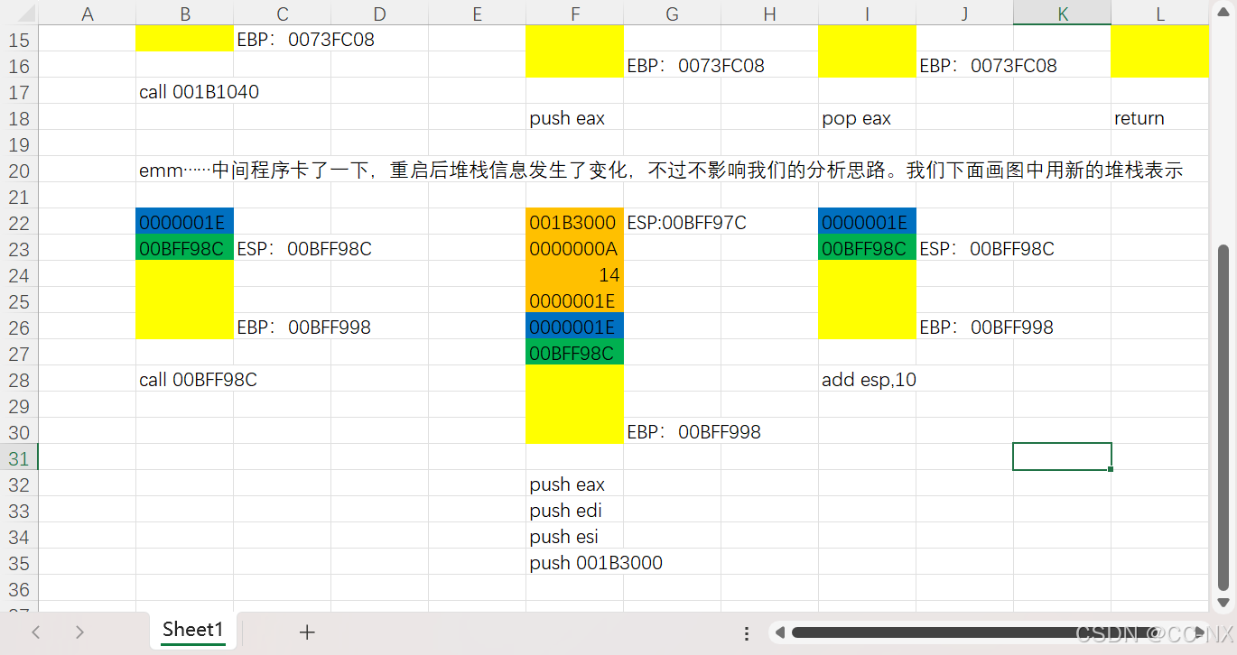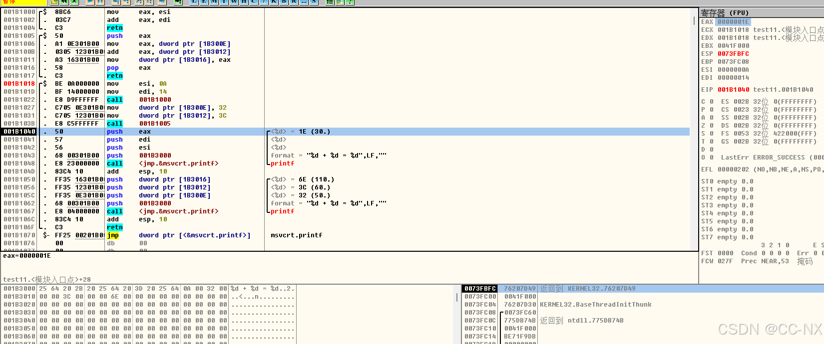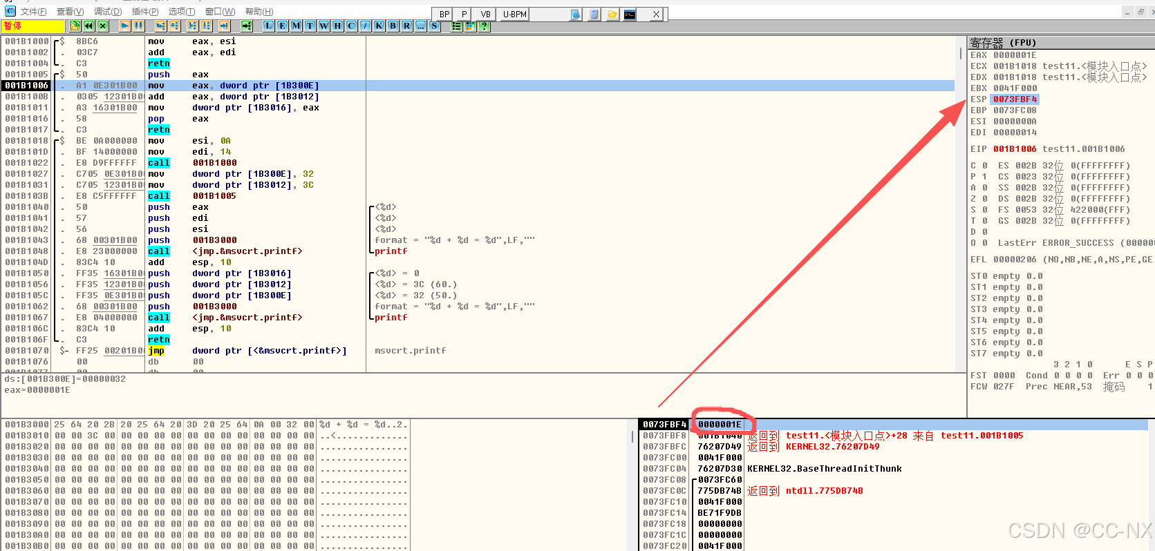 将EAX当前值(0000001Eh)压栈,ESP减4