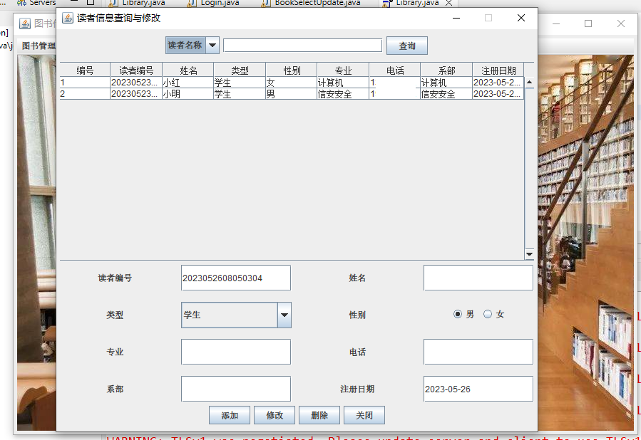 修改在线图书管理桌面系统Demo时,以 Eclipse为开发工具,JDK与Java Swing构建核心框架,用Swing打造交互界面,搭配SQL Server实现数据存储,形成完整开发链路。重点优化了图书信息的增删改查逻辑,通过Swing 的表格组件与事件监听,实现借阅状态实时更新。SQLServer的事务机制保障了批量图书录入时的数据完整性,索引设计提升了多条件查询效率。系统涵盖图书分类管理、借阅统计等功能,界面简洁直观。开发中深刻体会到桌面应用需兼顾操作流畅性与数据安全性。