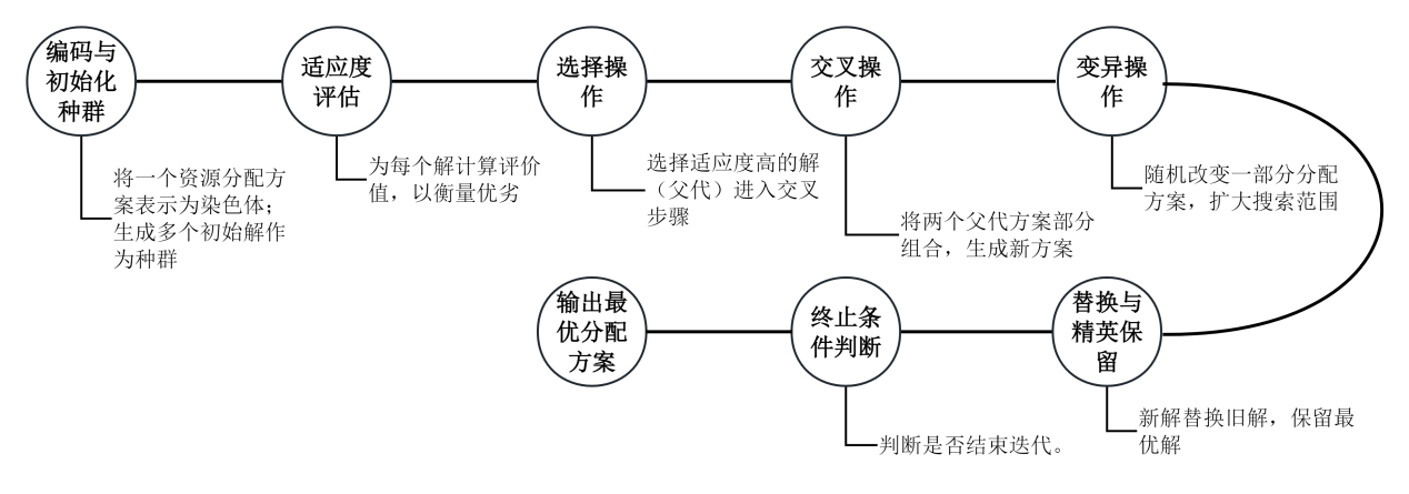 替换与精英保留 | 保留当前最优资源分配表,保证不会因变异或交叉退化,同时引入新解保持多样性 |