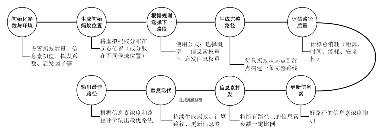 更新信息素 | 在系统数据库中强化优质路线的权重,引导后续规划更偏向这些路线 |