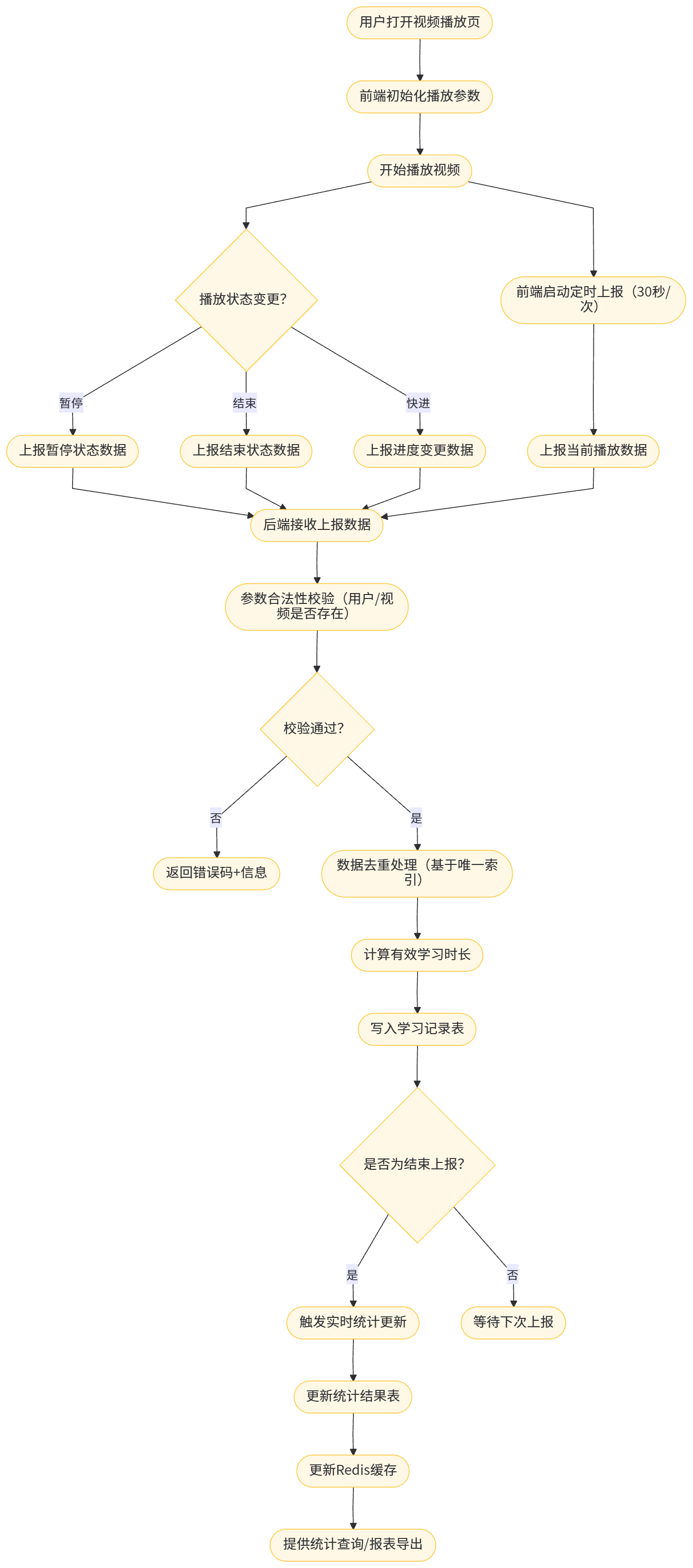 - 计算有效学习时长(排除快进、暂停、后台挂播等无效行为)。