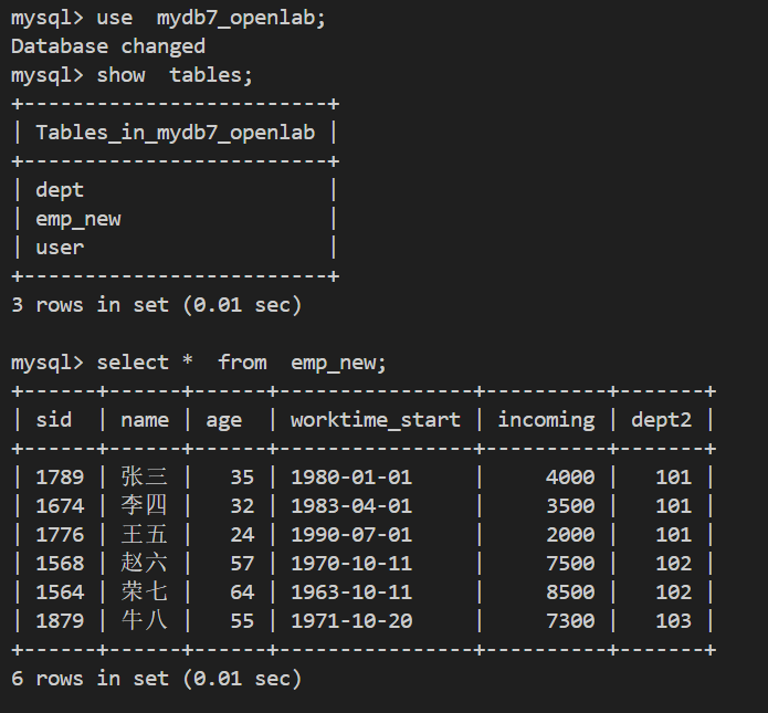 - 使用mydb7 openlab库