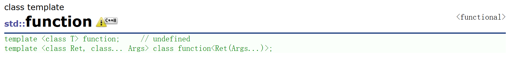 {//包装各种可调用对象function<int(int, int)> f1 = f;function<int(int, int)> f2 = Functor();function<int(int, int)> f3 = [](int a, int b) {return a + b;};cout << f1(1, 2) << endl;cout << f2(1, 2) << endl;cout << f3(1, 2) << endl;vector<function<int(int, int)>> vf = { f,Functor(),[](int a, int b) {return a + b;} };for (auto& f : vf){cout << f(1, 2) << endl;}return 0;