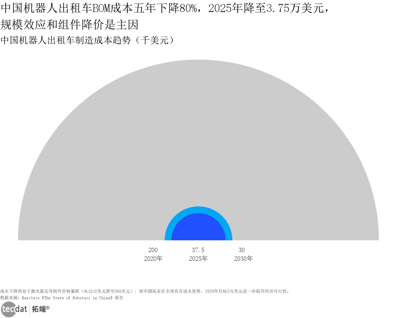 中国机器人出租车制造成本趋势半圆面积比例图表成本分析-1数据及PDF模板已分享到会员群