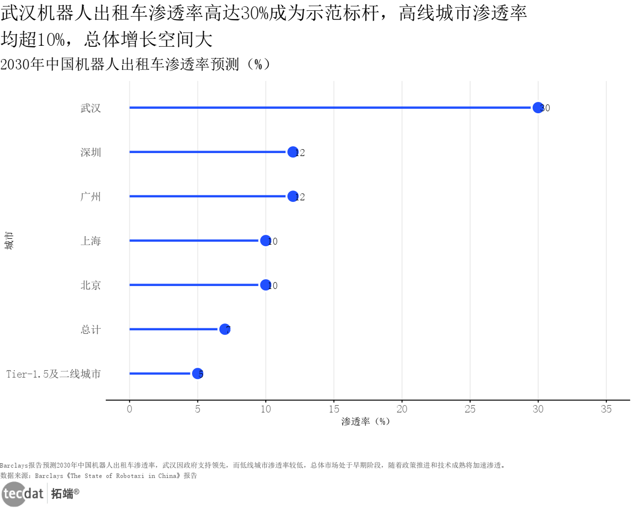 三、市场增长预测:2030年Robotaxi渗透率达7%,这些城市将先爆发