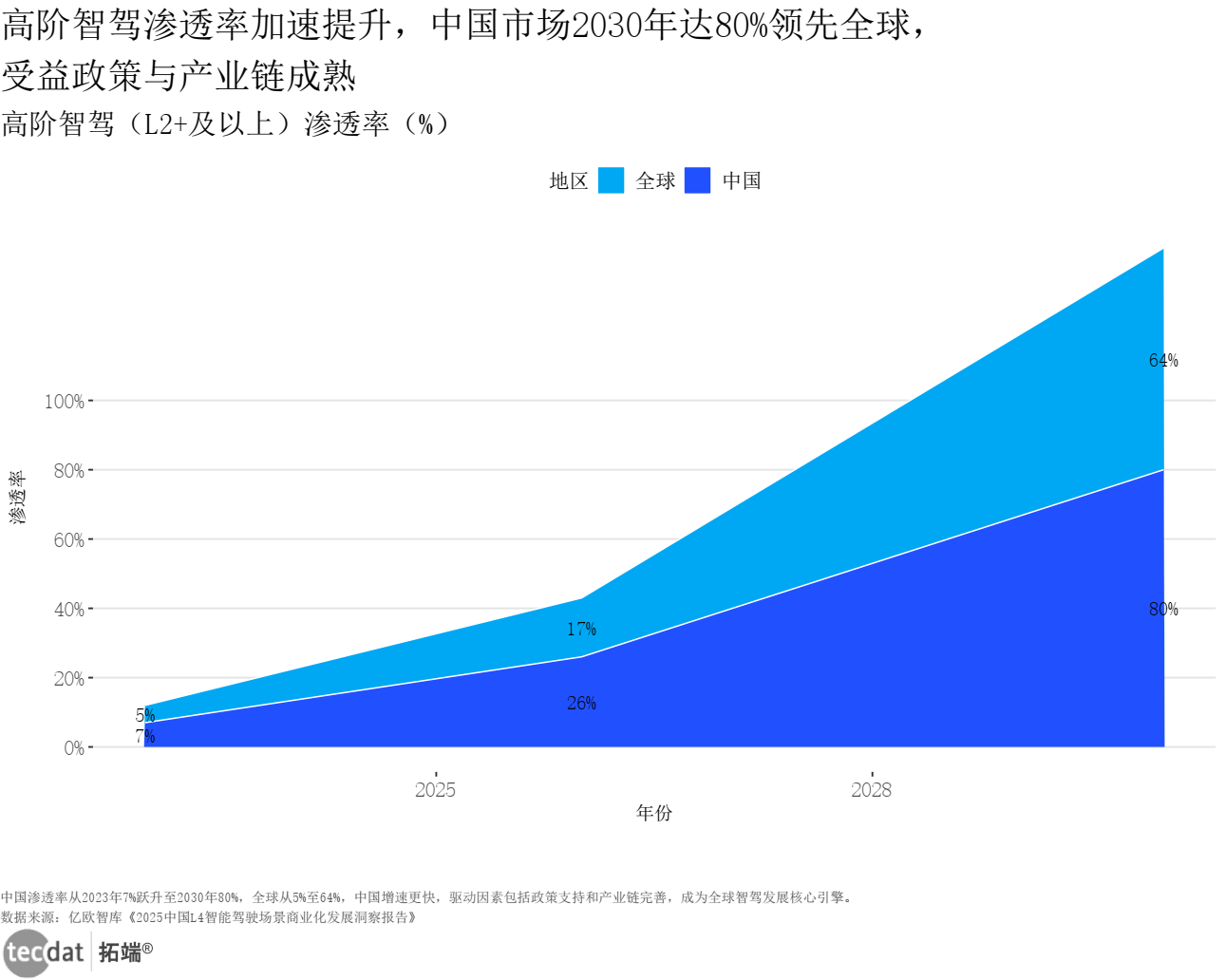 (二)高阶智驾渗透率:中国2030年达80%,甩开全球平均水平
