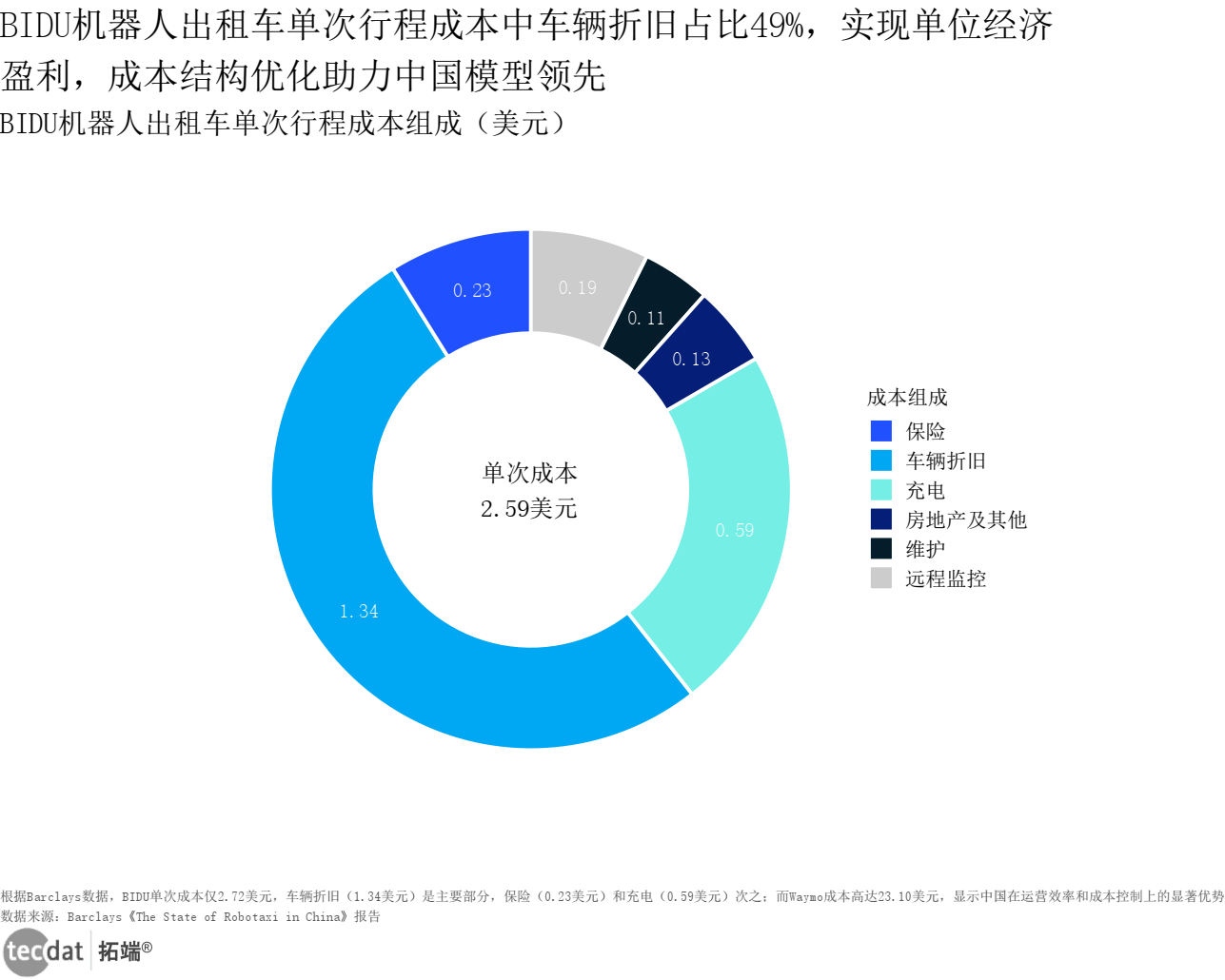 BIDU机器人出租车单次行程成本组成圆环图表成本分析-2数据及PDF模板已分享到会员群