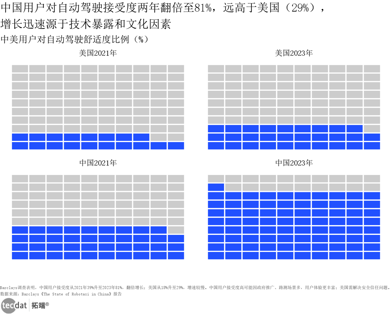 - 中美用户对自动驾驶舒适度比例华夫图表用户接受度-1