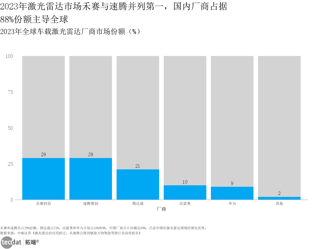 (二)激光雷达:中国厂商垄断全球88%份额,成本降到“15万车型用得起”
