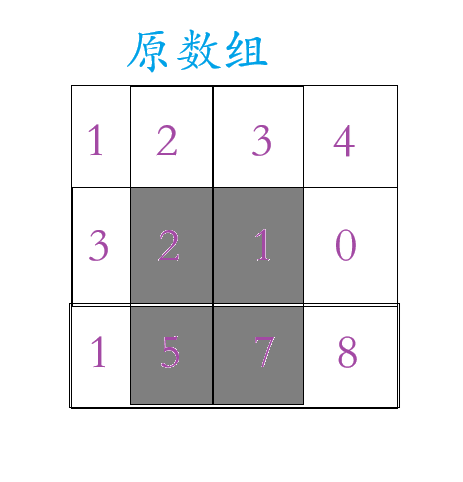 假设我们要求原数组这个区域的和: