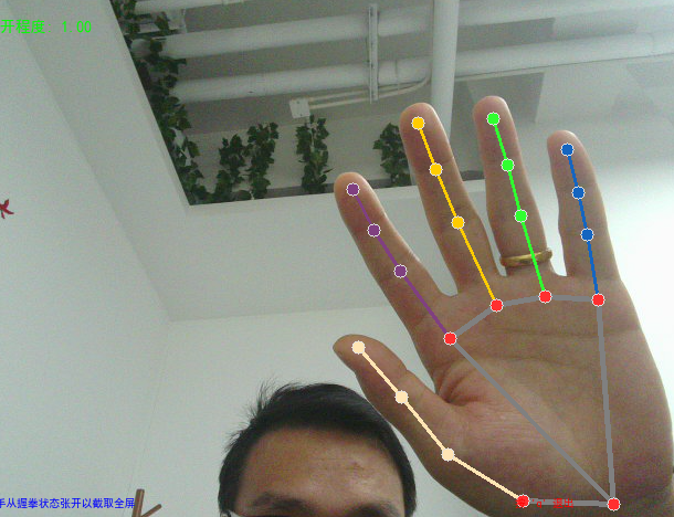 全屏截图触发:当检测到 “从握拳到完全张开” 的手势时,自动截取电脑全屏并保存。