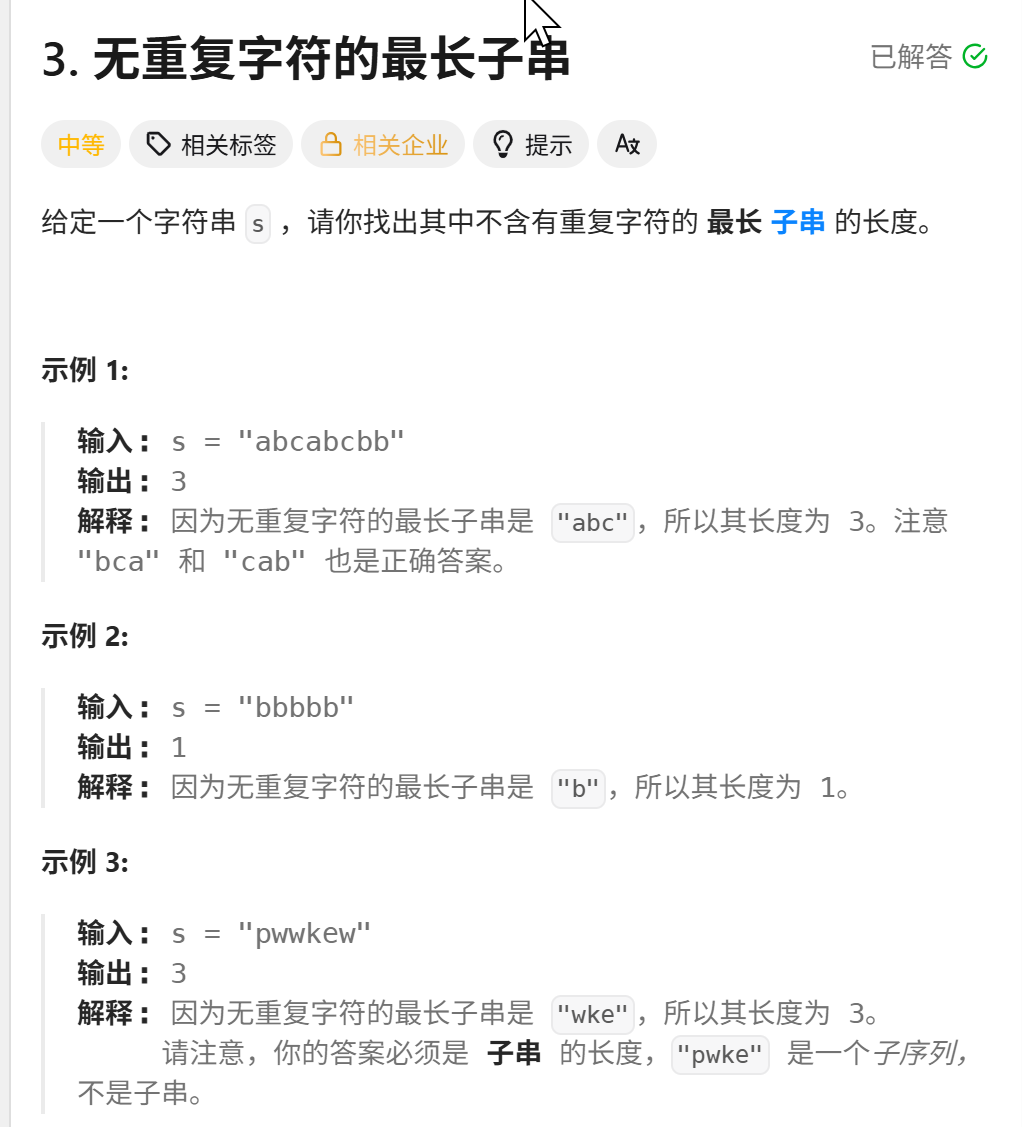 3. 无重复字符的最长子串