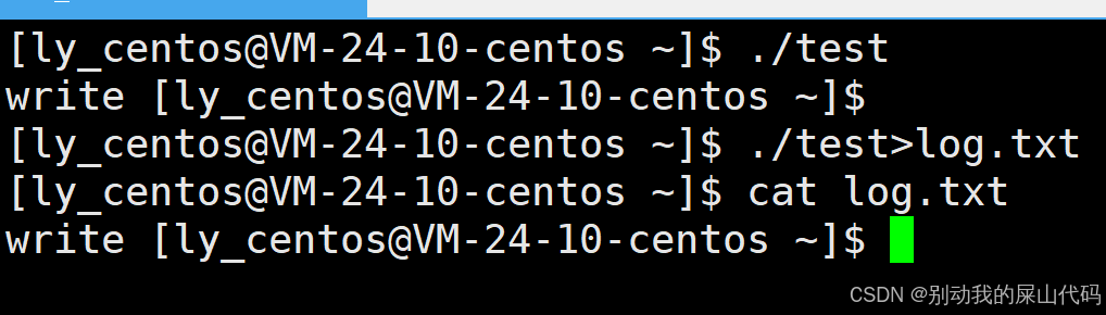 重定向(./test>log.txt)的影响 当输出重定向到文件时,标准 IO 的缓冲类型从 “行缓冲” 变为 “全缓冲”,而系统调用 write 的无缓冲特性不受影响。