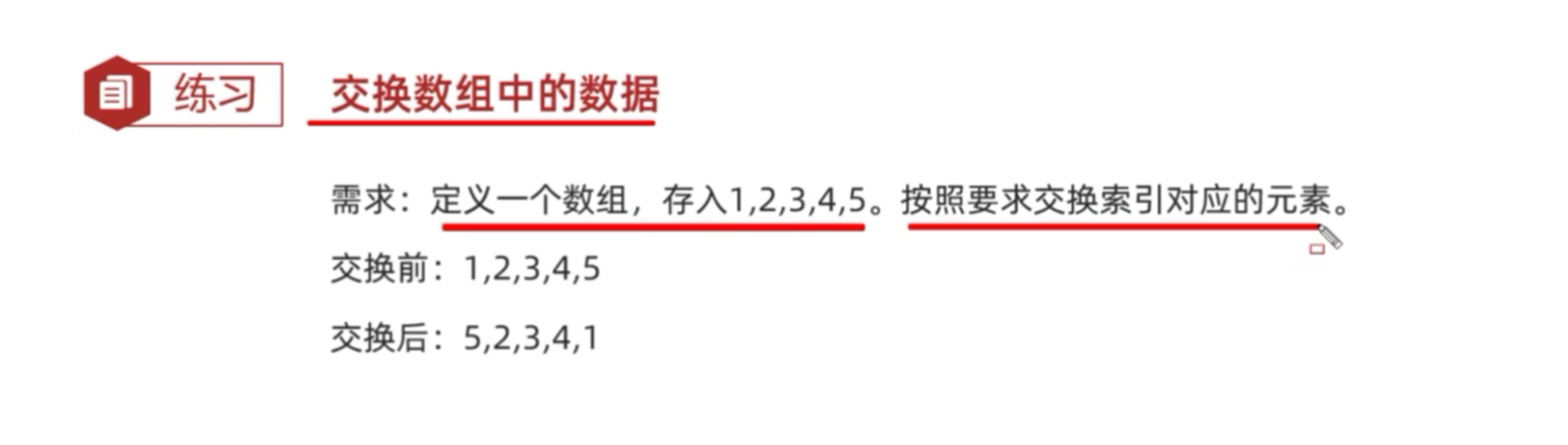 public class Test3 {public static void main(String[] args) {int[] arr = { 1, 2, 3, 4, 5 };int temp = arr[0];for(int i = 0,j = arr.length - 1;i<j;i++,j--){temp = arr[i];arr[i] = arr[j];arr[j] = temp;}for (int i = 0; i < arr.length; i++) {System.out.println(arr[i]);}}