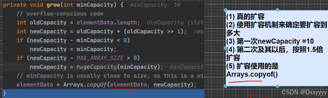 3)如果使用的是指定大小的构造器,则初始elementData容量为指定大小,如果需要扩容则直接扩容elementData为原来的1.5倍。