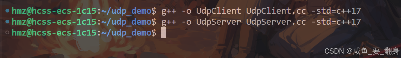 all:Udpclient UdpserverUdpclient:UdpClient.ccg++ -o $@ $^ -std=c++17 #-static