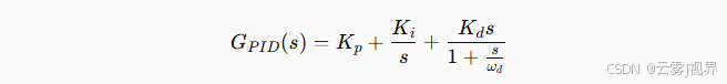 - 不完全微分:在微分项后串联低通滤波器(截止频率f_d = 10f_c ),抑制高频噪声: