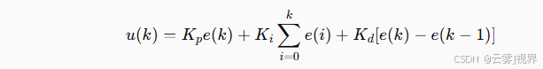 其中,e(k) e(k) e(k)为第k次采样的误差信号, K_p、K_i、K_d分别为比例、积分、微分系数。