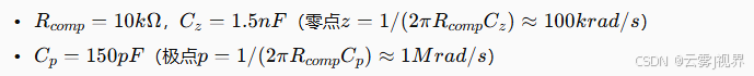 ,取 z/p = 1/10 ,解得z = 100krad/s ,p = 1Mrad/s。