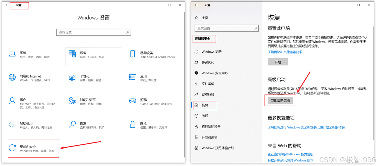 1、打开设置路径:点击屏幕左下角的开始菜单,找到齿轮状的 “设置” 图标,进去后依次选择 “更新和安全”→“恢复”,就像在手机里找功能开关一样简单!