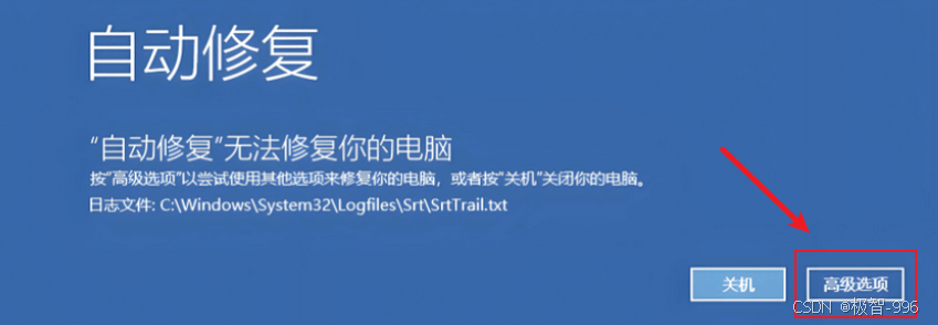 3、后续步骤同方法一:在自动修复界面点击 “高级选项”,之后就跟着方法一的第三步、第四步来,选择对应的安全模式类型就能进入啦。