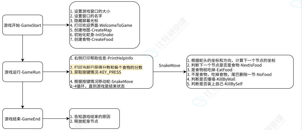 {//0.设置窗口,然后光标隐藏system("mode con cols=100 lines=30");system("title 贪吃蛇");HANDLE houtput = GetStdHandle(STD_OUTPUT_HANDLE);CONSOLE_CURSOR_INFO CursorInfo;GetConsoleCursorInfo(houtput, &CursorInfo);CursorInfo.bVisible = FALSE;SetConsoleCursorInfo(houtput, &CursorInfo);//1.打印环境界面//2.功能介绍WelcomeToGame();//3.绘制地图CreateMap();}