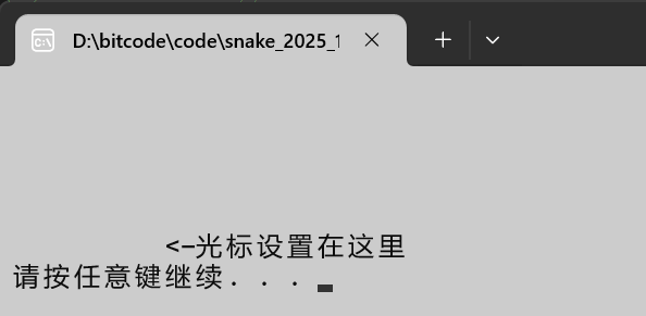 {//0.设置窗口,然后光标隐藏system("mode con cols=100 lines=30");system("title 贪吃蛇");HANDLE houtput = GetStdHandle(STD_OUTPUT_HANDLE);CONSOLE_CURSOR_INFO CursorInfo;GetConsoleCursorInfo(houtput, &CursorInfo);CursorInfo.bVisible = FALSE;SetConsoleCursorInfo(houtput, &CursorInfo);//1.打印环境界面//2.功能介绍WelcomeToGame();//3.绘制地图CreateMap();//4.创建蛇InitSnake(ps);}