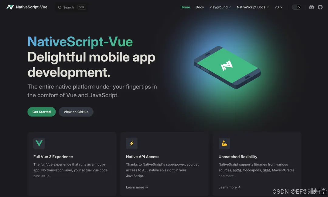 与基于 WebView 的混合应用框架不同,NativeScript-Vue 应用程序不是基于 Web 技术渲染的,而是直接使用原生 iOS 和 Android 上的本地用户界面组件。这意味着你写的 Vue 组件会被编译为原生 UI 元素——在 iOS 上是 UIButton、UILabel,在 Android 上是 android.widget.Button、TextView。